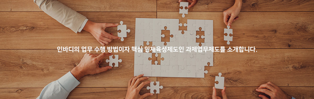 인바디의 업무수행방법이자 핵심 인재육성제도인 과제업무제도는 직무, 직급에 관계 없이 프로젝트 매니저(PM)가 되어 스스로 기획한 프로젝트에 책임과 권한을 가지고 일을 할 수 있습니다. 해오던 일의 개선점은 무엇인지, 시도할 수 있는 일은 무엇인지, 목표로 하는 결과물은 무엇인지 명확히 하여 과제업무로 공식화하고 실행합니다. 동시에 과제업무가 성공적으로 이루어질 수 있도록 선배들로부터 실질적인 조언을 들을 수 있습니다. 최초를 만들어내는 연구소, 세계의 인식을 바꾸는 영업, 최고의 효율을 내는 기획관리, 품질 불량 0%에 도전하는 생산. 각 분야의 선배들과 차기철 대표의 멘토링이 진행 됩니다. 선배의 통찰력은 일하는 시간과 실패의 횟수를 단축시켜줍니다. 작은 것에 매몰되어 흐려진 목표를 분명히 하거나 틀어진 방향을 다잡고 일을 크게 볼 수 있는 안목을 키울 수 있습니다.